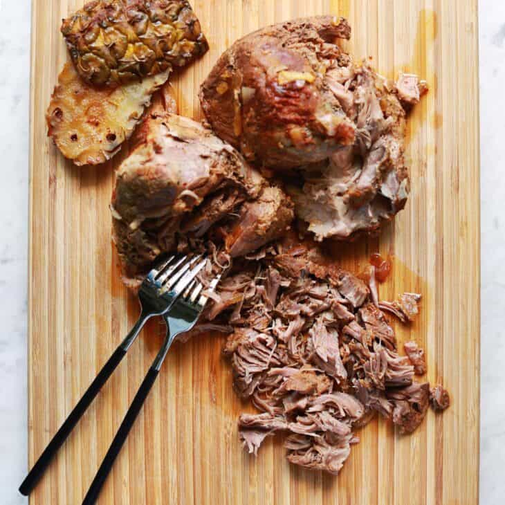 - I don’t trim the fat before slow cooking. I find leaving it on adds tenderness to the final dish. I also think it’s easier to remove any large fat sections during the shredding process.