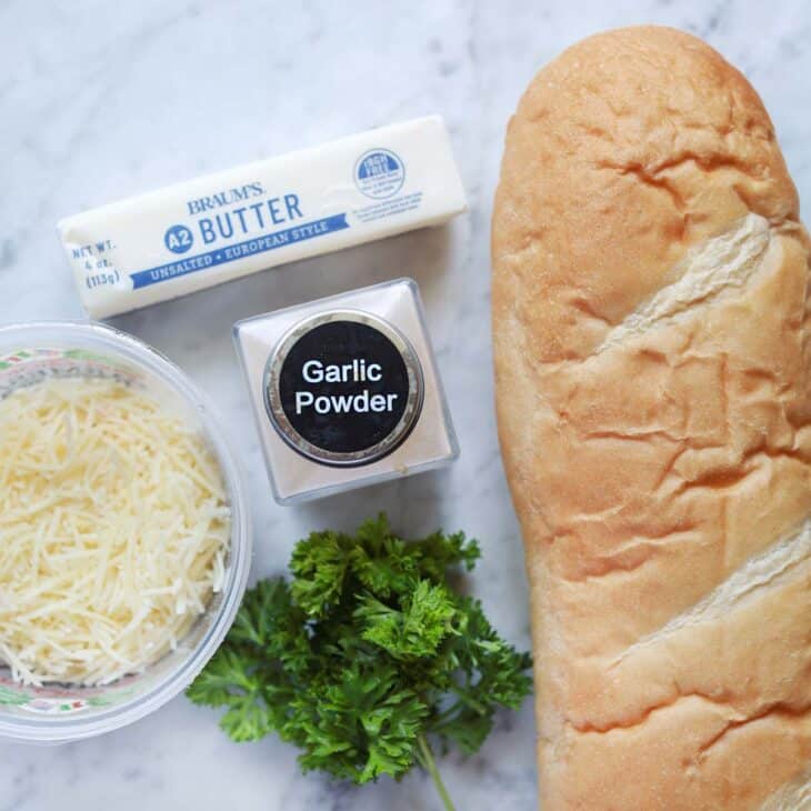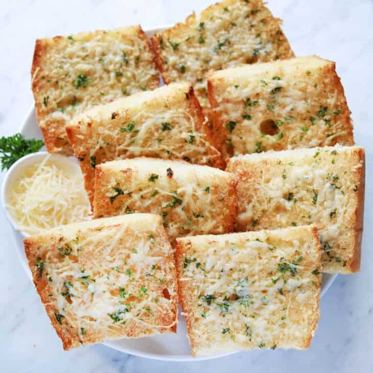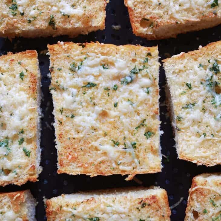 This easy garlic toast recipe can be made from start to finish in about 15 minutes in the oven or air fryer. This is a great way to use up stale bread. You only need 5 ingredients to make this simple and delicious side!
