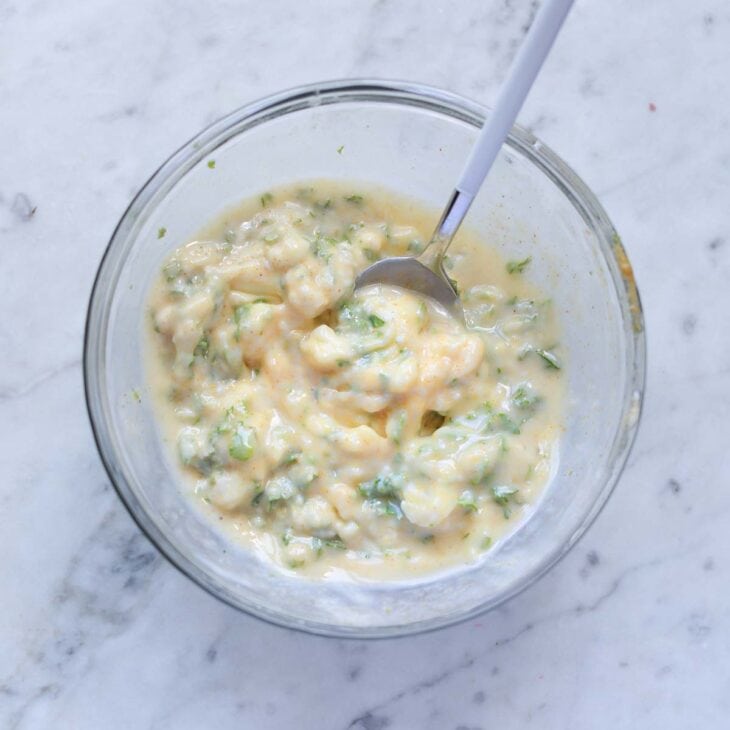 In a small bowl mix together the softened butter, parmesan cheese, chopped parsley and garlic powder. If your butter isn’t soft melt it in the microwave for 30 seconds or less. The goal being very soft butter but not melted into a liquid.